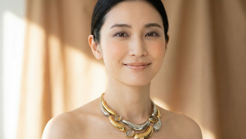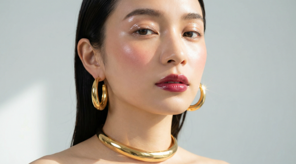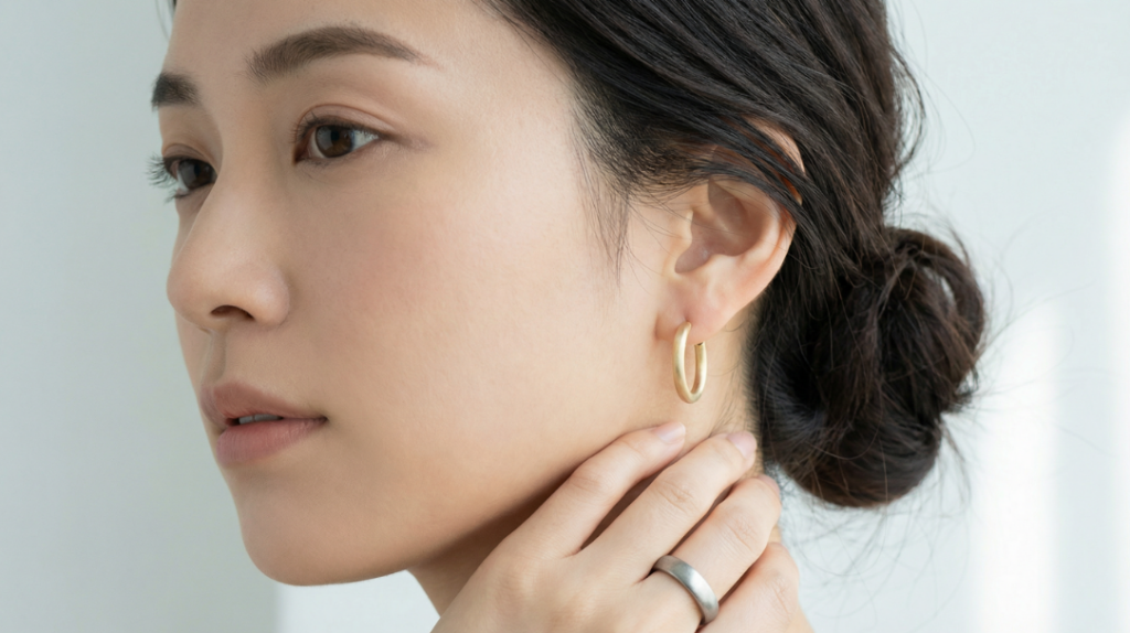肌になじむアクセサリーとは、目立たないものではなく、顔色やメイクと自然につながって見えるものです。アクセサリー単体で判断すると失敗しやすく、メイクとの組み合わせで初めて「なじんでいるかどうか」が決まります。