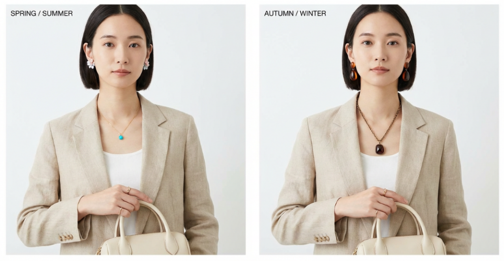 明るさとトーンを季節に合わせるだけで、アクセサリーの印象は大きく変わります。