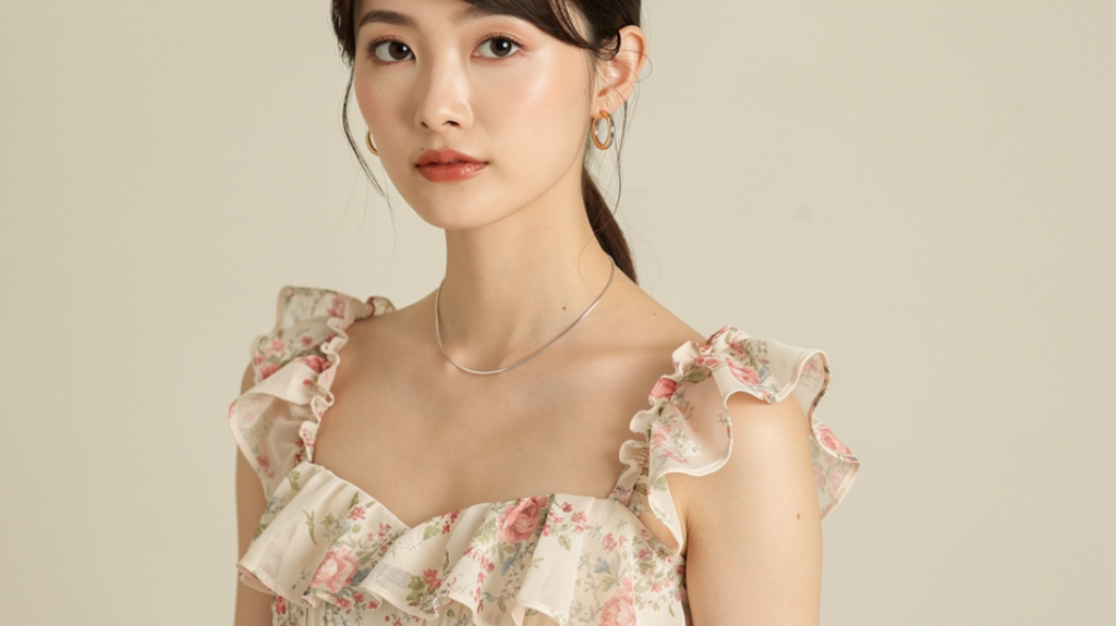 曲線や装飾の多い服に、同じ要素のアクセを重ねると、全体がぼやけて見えます。形や質感を少しシンプル寄りにすると、上品さが残ります。
