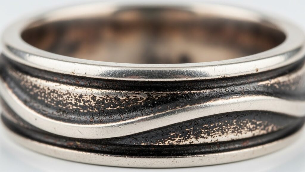 シルバー925の上にロジウムなどのメッキやコーティングが施されている場合、黒ずみの原因は表面の硫化ではなく、コーティング自体の劣化であることがあります。