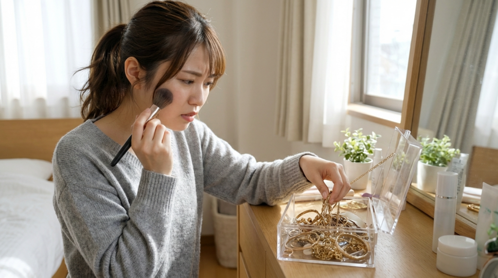 この記事では、アクセサリーを身につける前や外したあとの日常の場面を思い浮かべながら、迷いやすい判断や起こりがちな失敗を一つずつほどいていきます。
