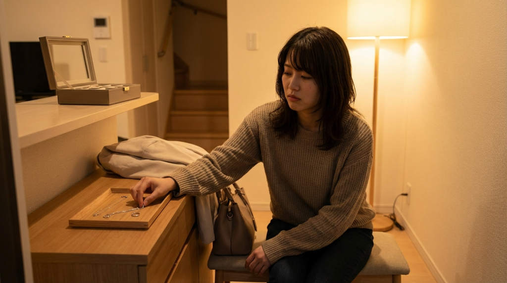 アクセサリーは身につける前と外した後とで、手の動きが大きく変わります。同じ収納方法でも、そのときの動作の流れに合っていないと、思った以上に負担を感じる場面が増えていきます。