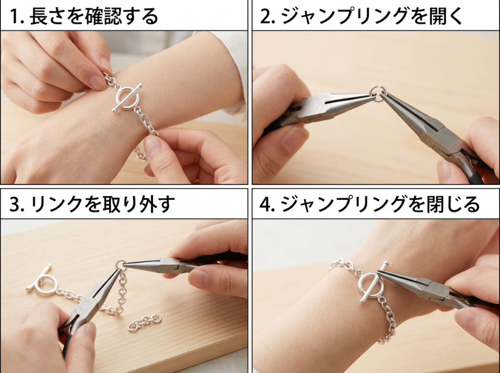 ブレスレットを自分で短くする方法|調整するための手順を図解で解説