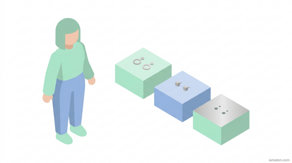 ここでは、実際に見たときの印象に直結する「サイズ・色・デザイン」の3つの基準から、具体的にどのようなピアスを選べば目立ちにくくなるのかを整理していきます。