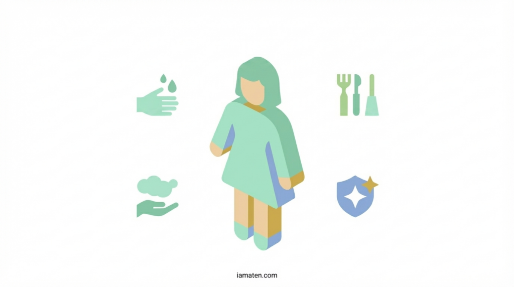 付け替える前に手を石けんで30秒以上洗い、水気をしっかり拭き取った状態で行います。